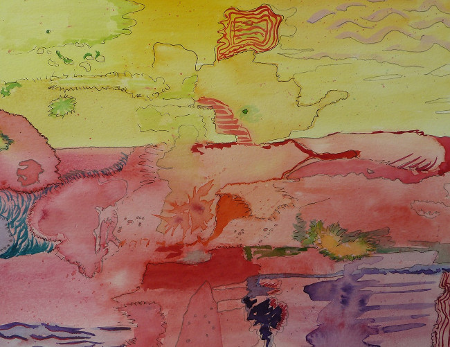 water color, ink, graphite, on paper 9 x 11 3/8 2025